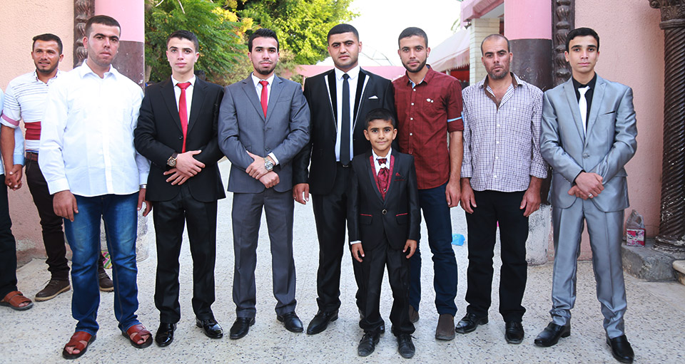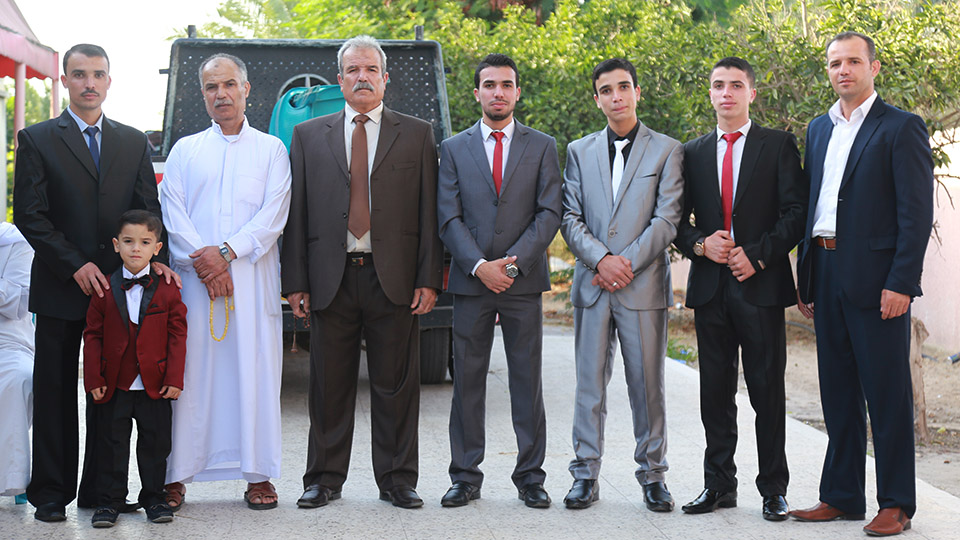 علي باسم (شقيق العروس)، اشرف الاغا (خاال العروس)، يحي الاغا(ابن عم العروس)، العريس، مصور الاغا(شقيق العروس). عبد الرازق(شقيق العروس)، عبد الله الاغا