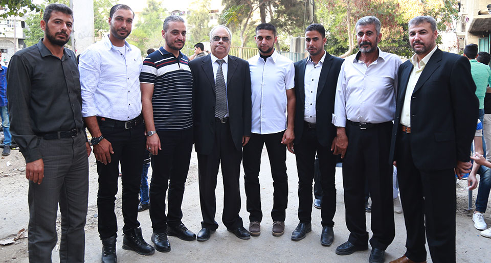 أ. بهاء(عم العريس)، والد العريس، السيد محمود عيد، العريس، والد العروس، خليل، جهاد مروان، أ. عزمي(عم العريس)