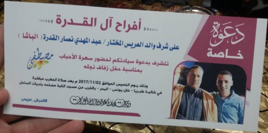 الرئيسة/متفرقات/عائلة القدرة تلغي حفل العريس مصطفى عبدالمهدي القدرة متفرقات عائلة القدرة تلغي حفل العريس مصطفى عبدالمهدي القدرة تاريخ النشر : الأربعاء | 01-11-2017 | 10:21 4459 عائلة القدرة تلغي حفل العريس مصطفى عبدالمهدي القدرة، بسسب حالات الوفاة اضغط هنا للتواصل أو التعرف على السيد حازم سعدي ربيع سعيد عثمان الأغا يمكنك تلقي أحدث الأخبار أول بأول بانضمامك لإحدى مجموعات الواتساب الخاصة بالعائلة من خلال الضغط هنـا اظهر المزيد