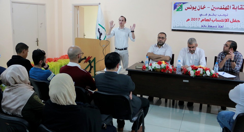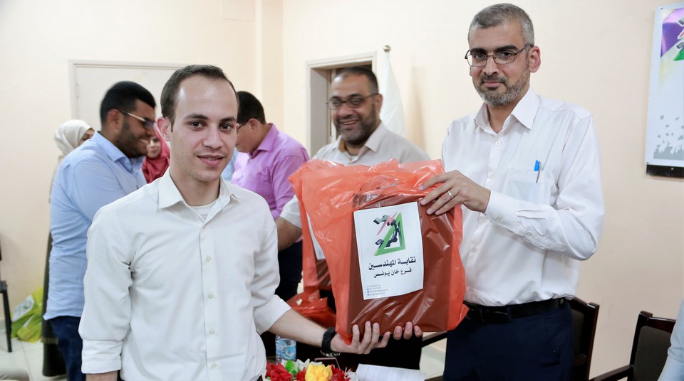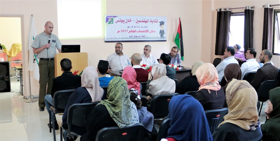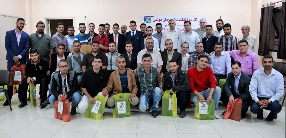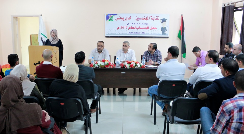 نظمت نقابة المهندسين فرع خان يونس يوم السبت الموافق 4-11-2017 حفل تكريم للمنتسبين الجدد بحضور رئيس وأعضاء مجلس الإدارة والمنتسبين الجدد من المهندسين والمهندسات وافتتح الحفل بتلاوة عطرة من القرآن الكريم.