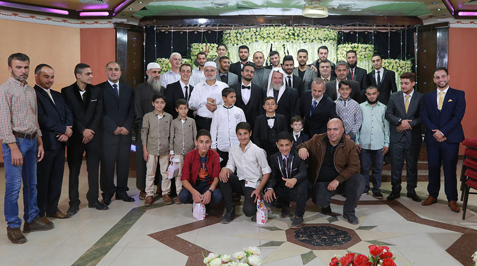 أ. احمد إياد الأغا، م.بلال منهل الأغا، محمد وادي، الحاج إياد، والد العروس، العريس، الحاج منير(عم العريس) ونجله أحمد، الحاج أبوسليمان وادي(عم العروس)، أ. رامي(عم العريس)، أحمد منهل الأغا، أحمد صبري، محمد طلعت، أشرف عاشور، عبدالرحمن(شقيق العروس)، وديع أحمد الأغا، أحمد(شقيق العريس)، أ. محمد إياد، أ. شادي(عم العريس)، سامي (شقيق العريس)، أ. عمر جودت