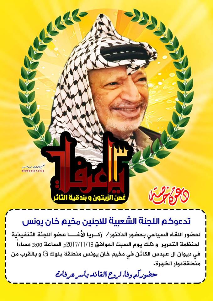 د. مازن ابو زيد رئيس اللجنة الشعبية للاجئين بخان يونس، اياد صافى عضو المجلس الثوري لحركة فتح، د. زكريا الأغا عضو اللجنة التنفيذية لمنظمة التحرير، أ. خالد السراج رئيس اللجنة الشعبية للاجئين بالنصيرات