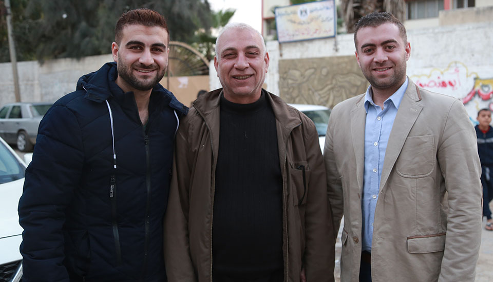 ياسر محمد الأغا يتوسط الشقيقين حسين ومحمد