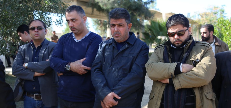 أ. ممتاز رمضان الأغا، الحاج عوني حمدان( شقيق الفقيد )، أ. روحي سالم الأغا