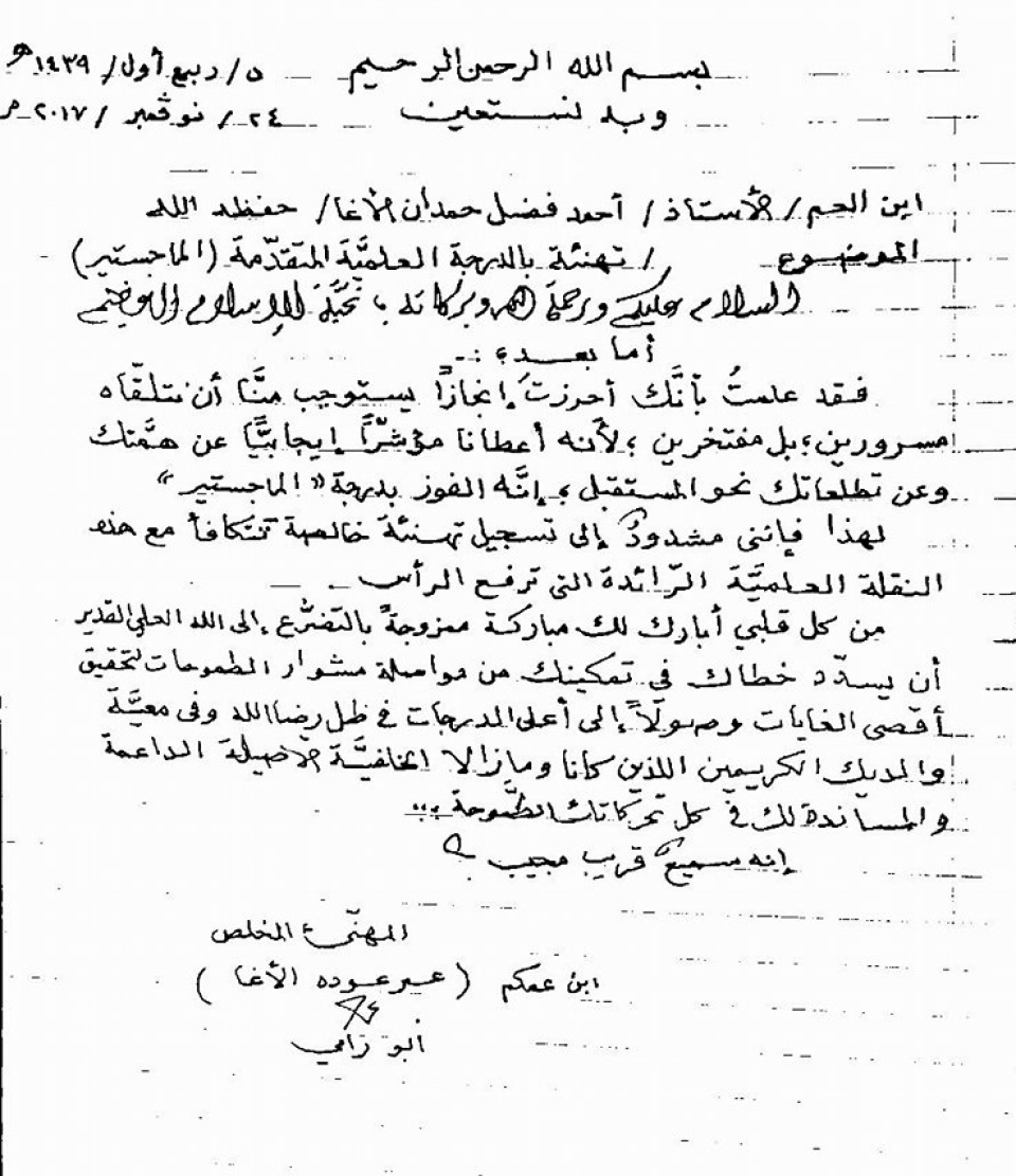 الرئيسة/مقالات/تهنئة من أ. أبو رامي الي أ. أحمد فضل الأغا مقالات تهنئة من أ. أبو رامي الي أ. أحمد فضل الأغا تاريخ النشر : الأحد | 26-11-2017 | 13:34 4501 اضغط هنا للتواصل أو التعرف على الأستاذ أحمد فضل (عمر) حمدان ملاحي بدوي أحمد إبراهيم(بدوي) الأغا يمكنك تلقي أحدث الأخبار أول بأول بانضمامك لإحدى مجموعات الواتساب الخاصة بالعائلة من خلال الضغط هنـا اظهر المزيد