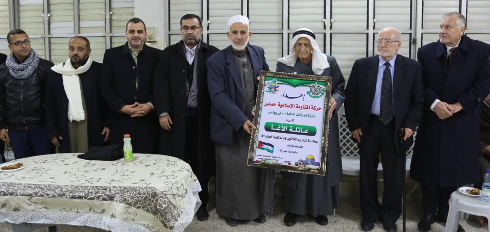 الاربعاء 06-12-2017 وفد من حماس يزور ديوان عائلة الأغا بالقلعة في إطار التواصل مع عائلات مدينة خانيونس في ذكري انطلاق حركة المقاومة الاسلامية حماس وقد كان على رأس الوفد الدكتور يونس الأسطل عضو المجلس التشريعي عن حركة حماس، الوزير محمد جواد الفرا، و أ. أبوأسامة أحمد فضل البطة، م. علاء الدين البطة، أ. عبدالله العقاد، أ. أيمن الزيني د. حمدي زعرب، سالم ابومعروف، ربيع ابوحطب، أمجد رياض شهوان، تامر بريكة، وكان في استقبالهم عدد من أبناء ووجهاء عائلة الاغا على رأسهم مختار العائلة الحاج وديع الاغا والوزير محمد رمضان الاغا وأ. أبوارامي عمر الأغا الذى رحب بالوفد الزائر.