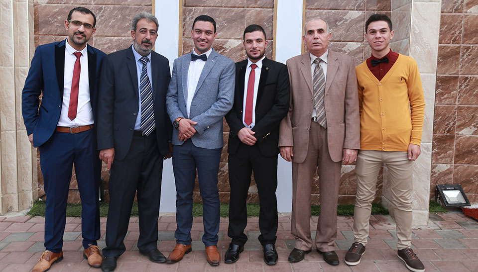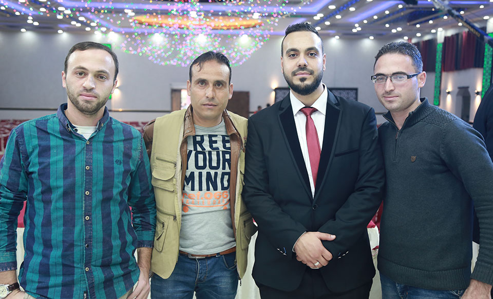 أ. محمد عصام الأغا(شقيق العروس)، أ. هشام(عم العروس)، أ. أُبي سفيان الأغا، م. هيثم النخالة