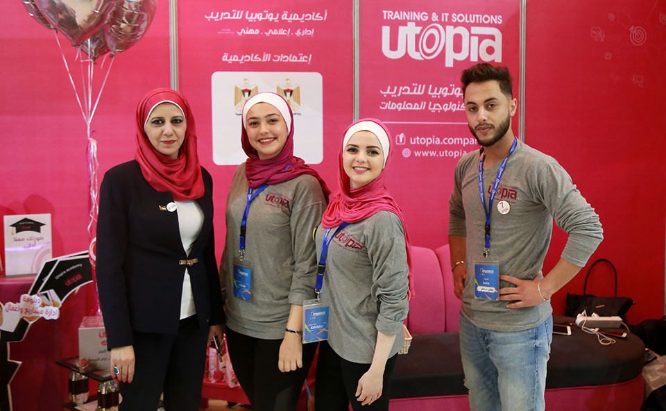 أ. ياسر الأغا(إعلام إجتماعي للمعرض)، الإعلامي أ. محمد هشام ابوالقمبز، أ. محمود البربار، أ. علي السعافين(مدونة فرص)