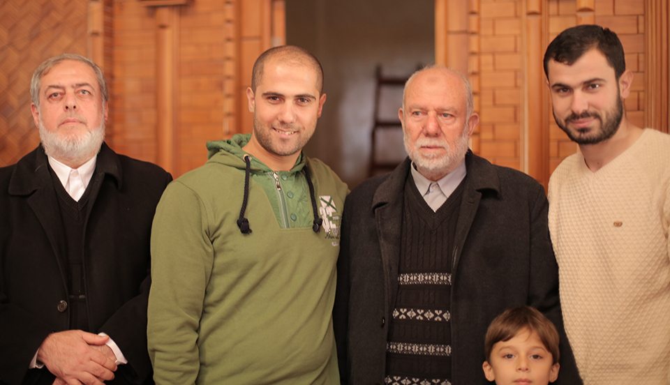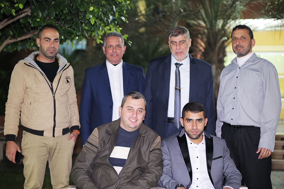 جميل (شقيق العريس) ، العريس ، عبادة النجار ، محمود (شقيق العريس) ، هشام الأغا ، حمزة النجار (شقيق العروس)