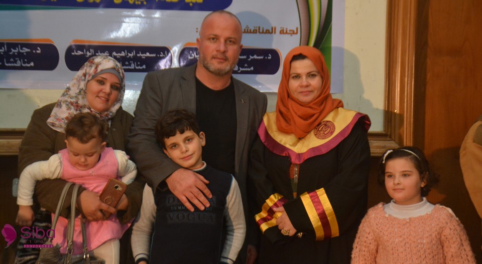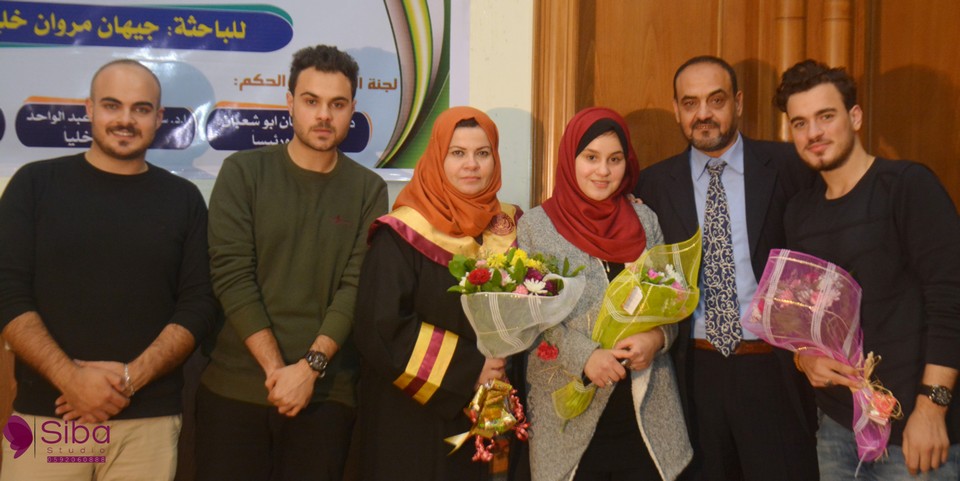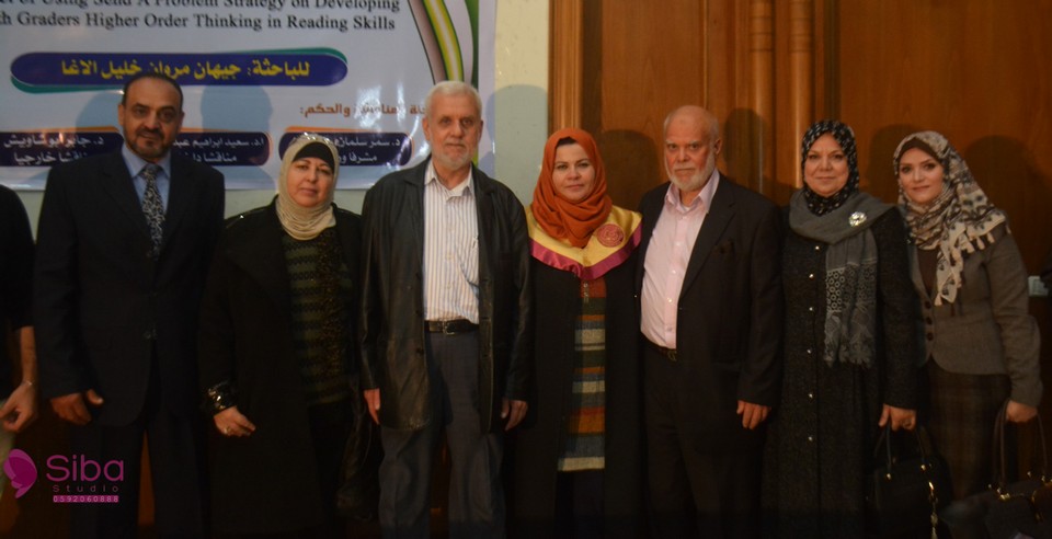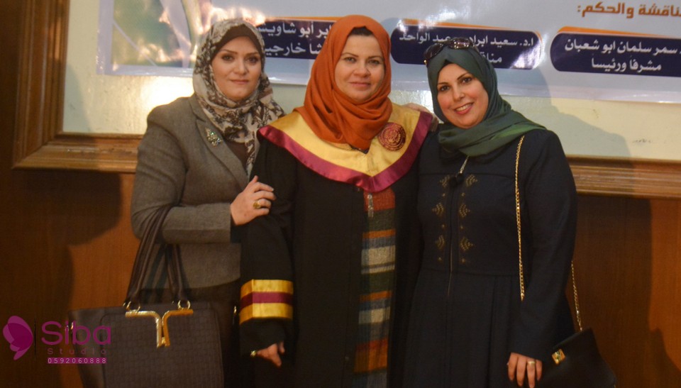 الباحثة، د.جابر أبوشاويش، أ. د. سعيد عبدالواحد (مناقشاً داخلياً)، د.سمر أبوشعبان (مشرفاً ورئيساً)