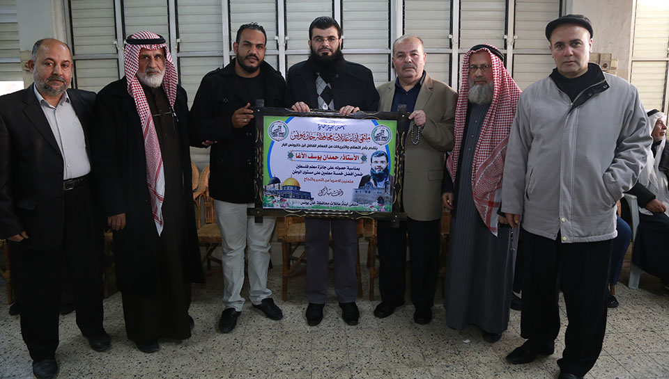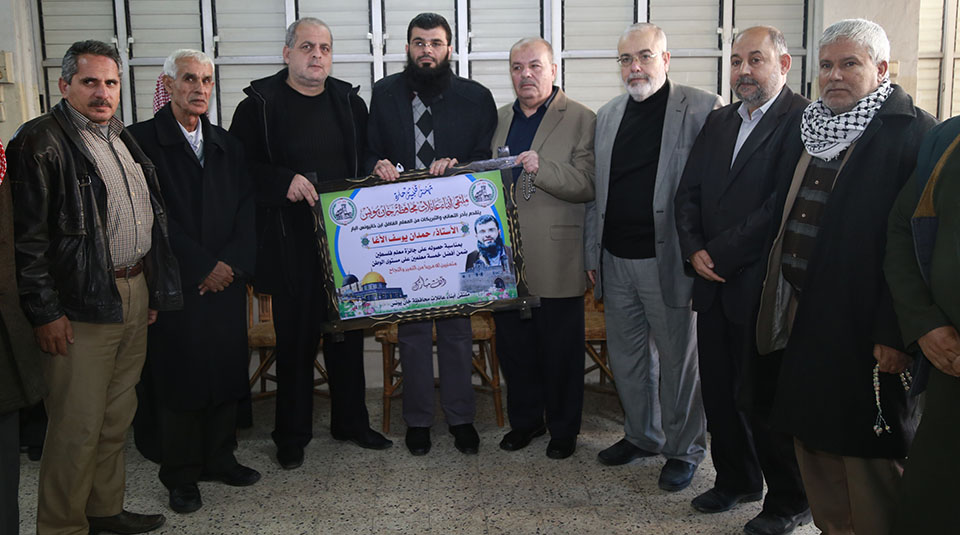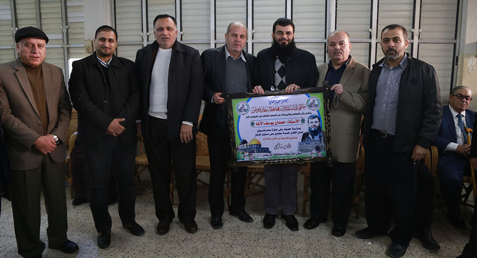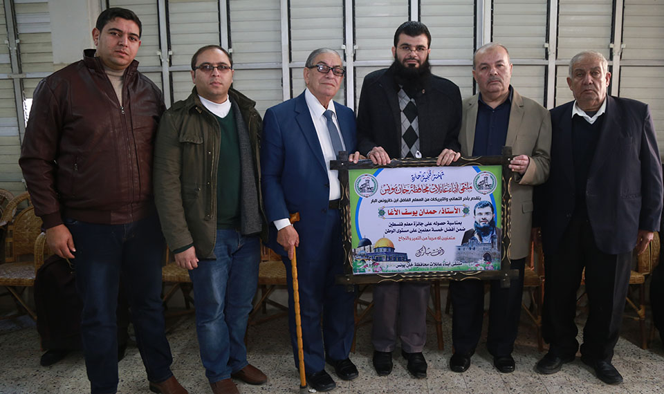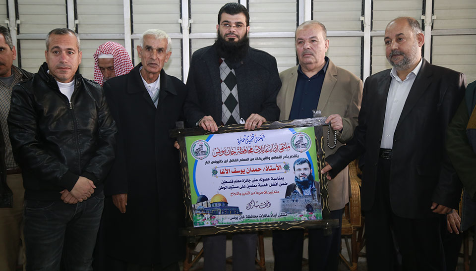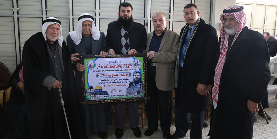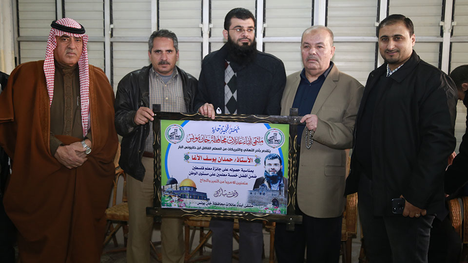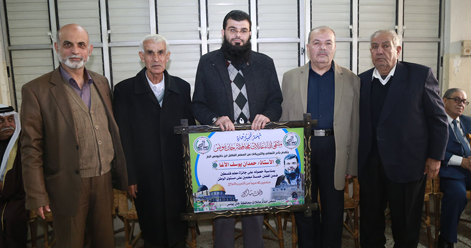 ملتقى عائلات خان يونس يكرم أ. حمدان الأغا لفوزه بلقب معلم فلسطين
