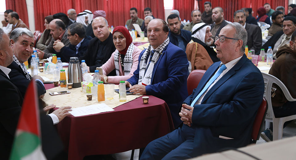 أ. عبدالعزيز قديح(جبهة النضال الشعبي)، سعادة م. عماد خالد الأغا(فتح)، د. اسماعيل رضوان(حماس)، أ. وليد الحصري( رئيس الغرفة التجارية)، م. أسامة الحاج أحمد( الجبهة الشعبية)