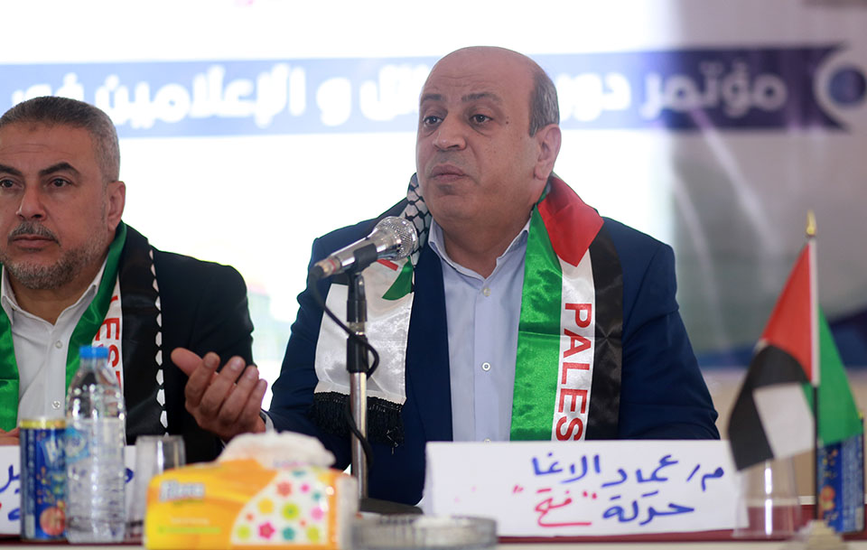(حينما نتحدث عن القدس فإننا نتحدث عن مهجة القلوب، حينما نتحدث عن القدس فإنها سنو الروح لكل فرد فينا، حينما نتحدث عن القدس نتحدث عن زهرة المدائن، حينما نتحدث عن القدس نتحدث عن إيمانٍ ومعتقدات) ، بهذه الكلمات بدأ سعادة م. عماد الأغا كلمته في المؤتمر، وأضاف أن الموقف من قضية القدس هو موقف موحد لكل الشعب الفلسطيني وبكل قواه ومعنا كل الشعوب الاسلامية وأحرار العالم.