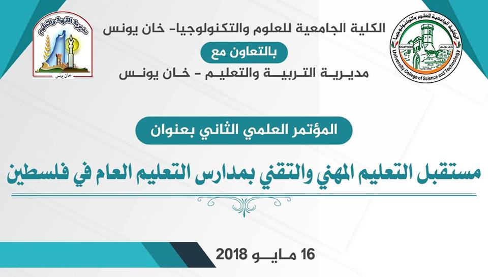 وفي ظل التوجهات الحكومية لدمج التعليم المهني والتقني بمدارس التعليم العام في فلسطين، تسعى الكلية الجامعية للعلوم والتكنولوجيا بالتعاون مع مديرية التربية والتعليم - خان يونس للمساهمة في إنجاح هذه التوجهات من خلال تنظيم مؤتمر علمي لتشخيص واقع التعليم المهني والتقني سعيـًا لتطويره وفقـًا للمستجدات ومتطلبات المرحلة.