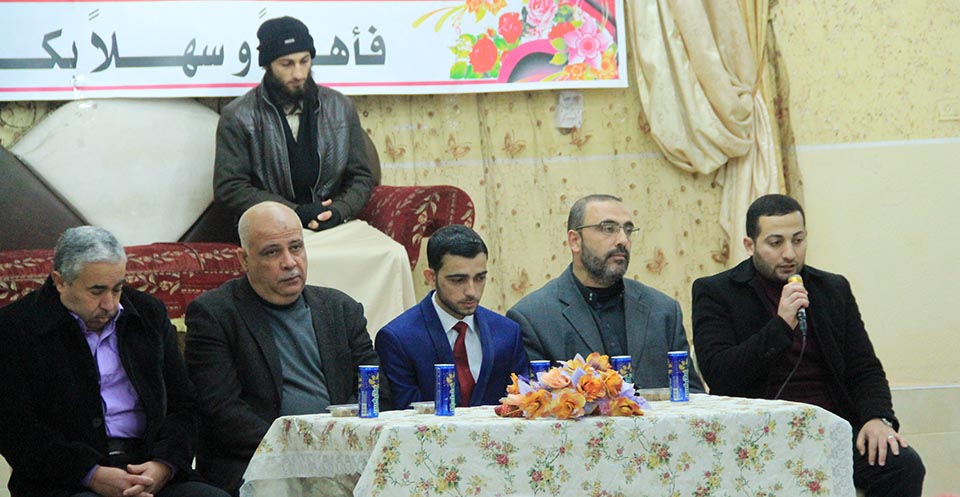 صالة الامارات شارع القصيلة خان يونس الجمعة 05-01-2018 حفل اشهارالانسة هديل عماد(عمار) حافظ مصطفى صالح الشوربجي الي الشاب جهاد سليم حمودة حسن اسليم والف مبارك.