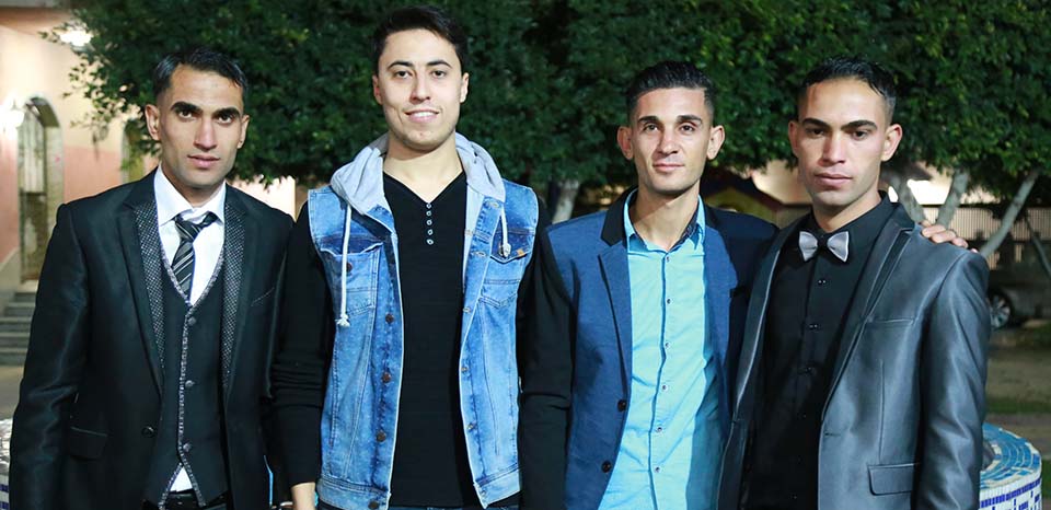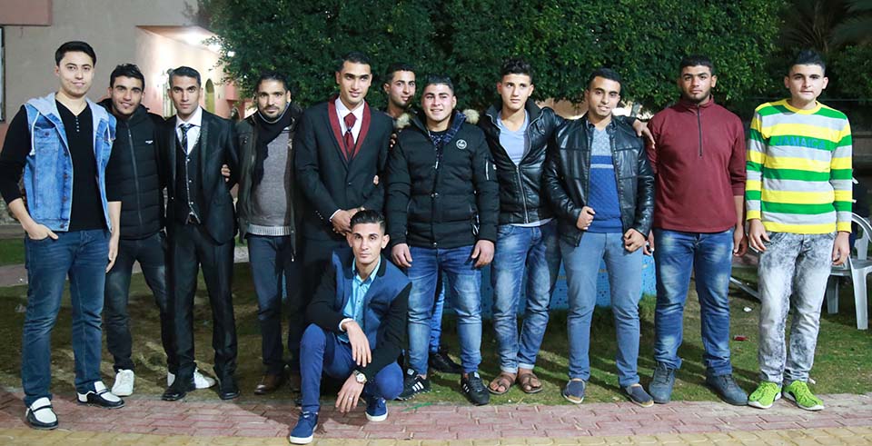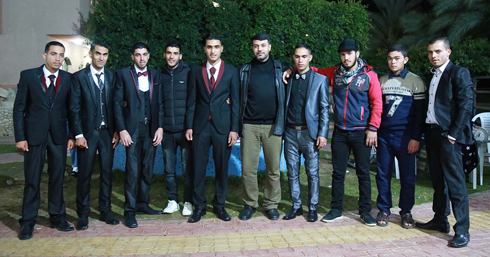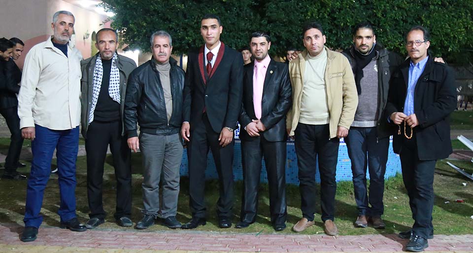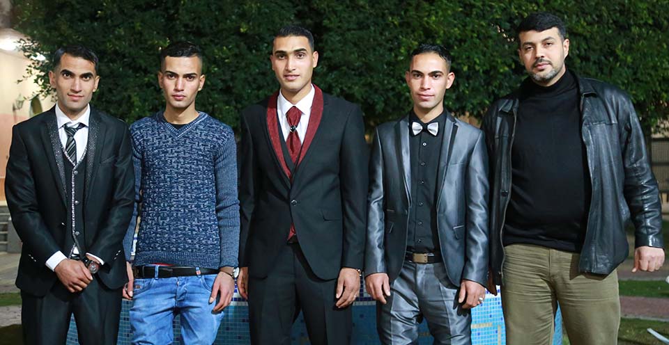 ابونظمي ابوعودة، محمد الفرا، أ.حمادة الاغا، مطر الاغا، العريس، أ.نعيم الاغا، فؤاد الاغا، امجد الاغا(زوج شقيقة العريس)