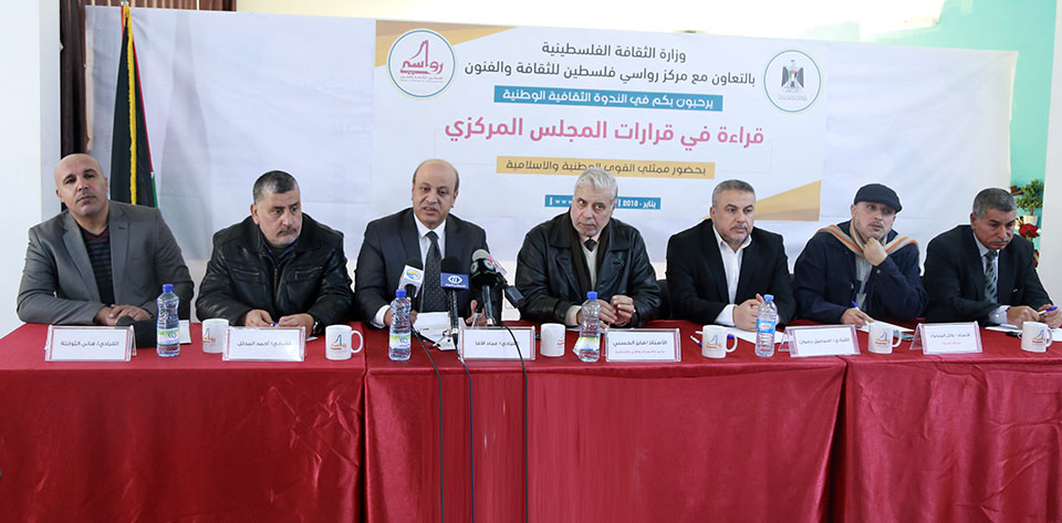 نظم مركز رواسي فلسطين بالتعان مع وزارة الثقافة الفلسطينية، ندوة سياسية حول القرارات المنبثقة عن اجتماع المجلس المركزي الفلسطيني، حضرها ممثلين عن فصائل العمل الوطني والاسلامي، ولفيف من المثقفين والمهتمين.