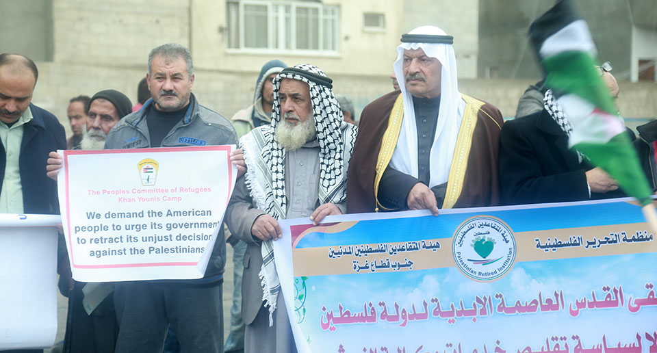 ﺧﺎﻥ ﻳﻮﻧﺲ- ﺟﻬﺎﺩ ﺃﺣﻤﺪ- ﻧﻈﻤﺖ ﺍﻟﻠﺠﻨﺔ ﺍﻟﺸﻌﺒﻴﺔ ﻟﻼﺟﺌﻴﻦ ﻣﺨﻴﻢ ﺧﺎﻥ ﻳﻮﻧﺲ ﻇﻬﺮ ﺍﻟﻴﻮﻡ ﻭﻗﻔﺔ ﺍﺣﺘﺠﺎﺟﻴﺔ ﻣﻨﺪﺩﺓ ﺑﻘﺮﺍﺭﺍﺕ ﺍﻟﺮﺋﻴﺲ ﺍﻷﻣﺮﻳﻜﻲ ﺗﺮﺍﻣﺐ ﻭﺳﻴﺎﺳﺔ ﺍﻹﺩﺍﺭﺓ ﺍﻷﻣﺮﻳﻜﻴﺔ ﺑﺤﻖ ﺍﻟﺸﻌﺐ ﺍﻟﻔﻠﺴﻄﻴﻨﻲ، ﻭﺍﻟﺘﻲ ﺩﻋﺖ ﺇﻟﻴﻬﺎ.