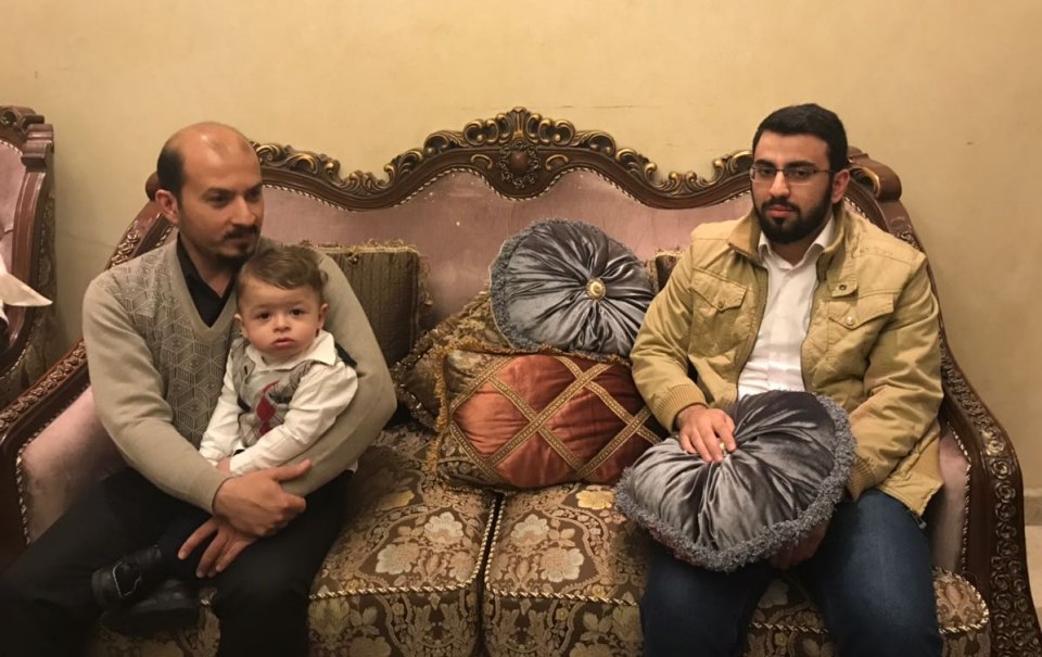 الدكتور / بلال باسم الأغا (حفيد الفقيد) ، السيد / أحمد الأخرس ونجله ساري.