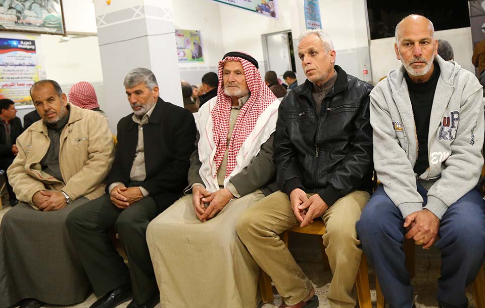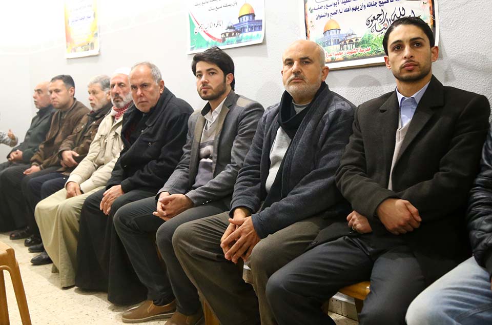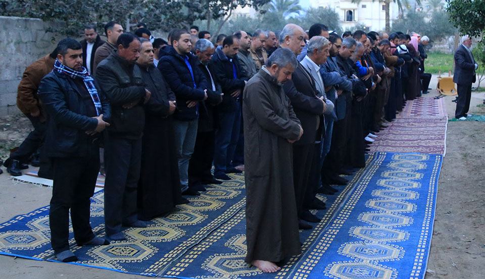 د. فرج الاغا خال الفقيد اماما للمعزين خلال صلاة مغرب اليوم الثالث لبيت العزاء