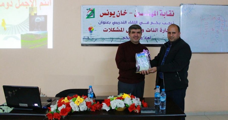نظمت نقابة المهندسين خانيونس اليوم السبت الموافق 17-02-2018 لقاء تدريبي بعنوان ادارة الذات وفن حل المشكلات بحضور ضيف اللقاء د. مؤمن عبدالواحد و عدد لفيف من المهندسين