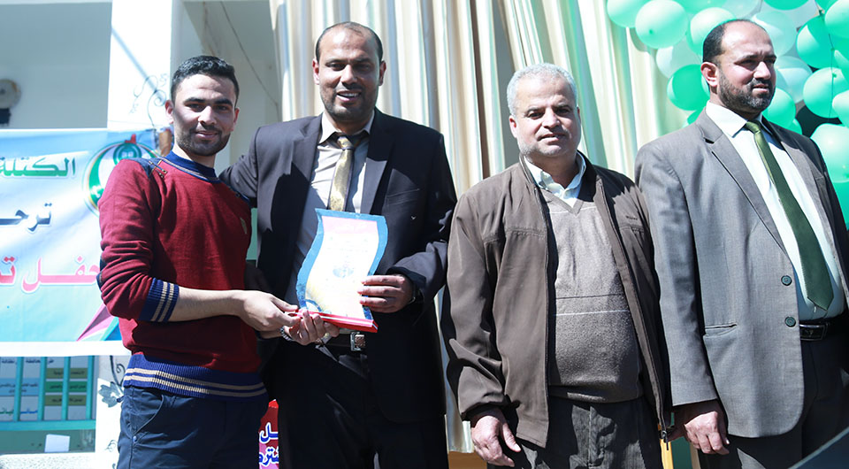 أ. ياسر أبو صبحة يتوسط عريفي الإحتفال، مهران نبيل الأغأ، قاسم أنور عبد الغفور