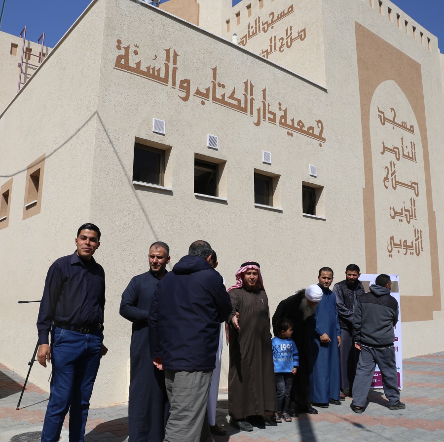 احتفلت جمعية دار الكتاب والسنة بافتتاح مسجد الناصر صلاح الدين الأيوبي، بتمويل كريم من مؤسسة الشيخ عيد الخيرية ومساهمة أهل الخير بالتبرع بالأرض ونحوها محلياً، وذلك بحضور لفيف من المسؤولين وممثلي المؤسسات الحكومية والأهلية والأهالي المحيطين بالمسجد في خان يونس جنوب القطاع. وأثني الشيخ الدكتور إبراهيم الأسطل في كلمة الجمعية على جهود المتبرعين في بناء المساجد وإعمارها وتطوير مكوناتها، ليعود المسجد كوجهة للصلاة وتعليم الأبناء وتوجيه النشء نحو الصلاح والفلاح في الدارين. وبين أن المسجد مكون من طابقين وملحقاتهما كمصلى النساء ومركز لتعليم القرآن الكريم والسنة ومتوضأ وساحات خارجية، لافتاً إلى أن دار الكتاب والسنة بدأت برامجها الدعوية المرافقة لأداء الصلوات الخمس والجمع بالمسجدعلى صعيد الدروس والمحاضرات وتحفيظ القرآن الكريم ونحوها.