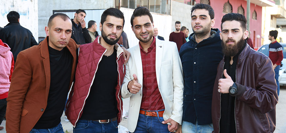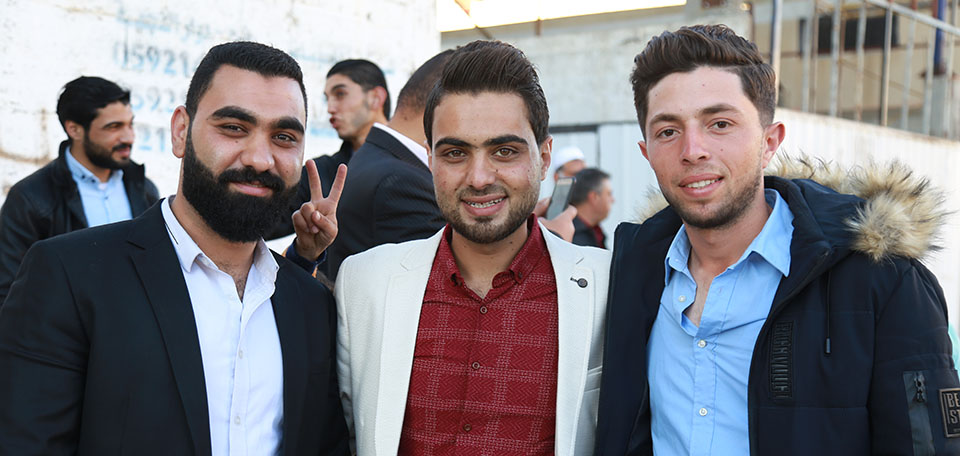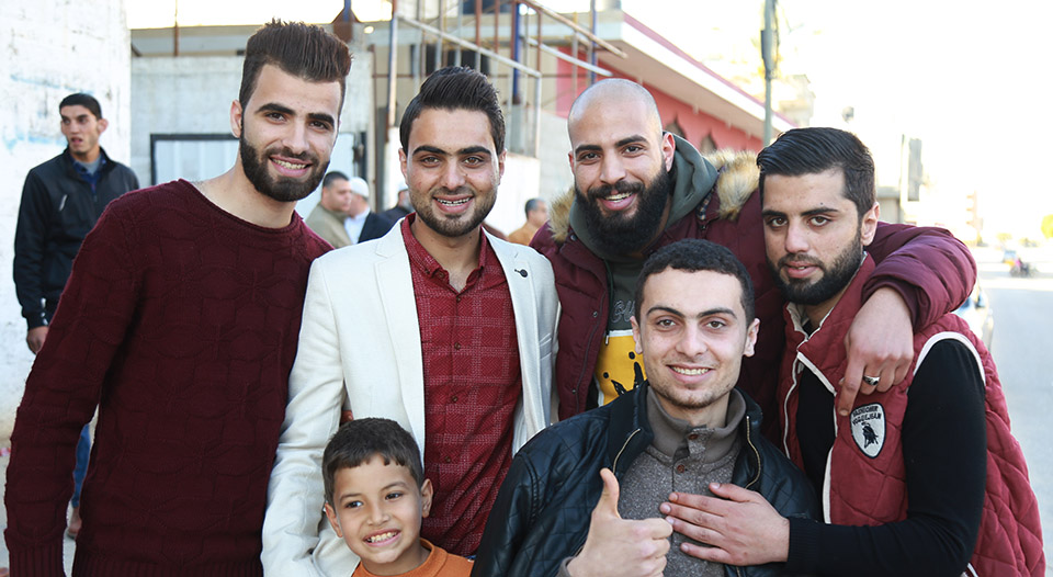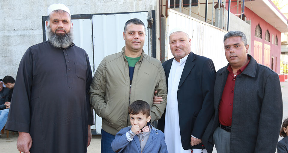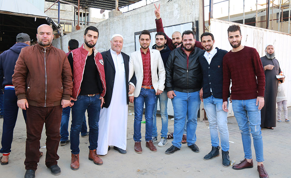 باسل نصار، أ.امجد نصار، م.رمزي الفالوجي، العريس، أ. عبد الله عواد، أ. محمد الشبراوي(شقيق العريس)، م. سفيان الاغا