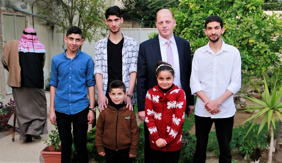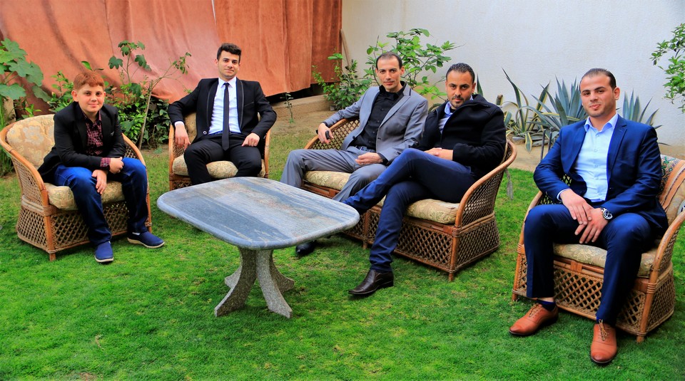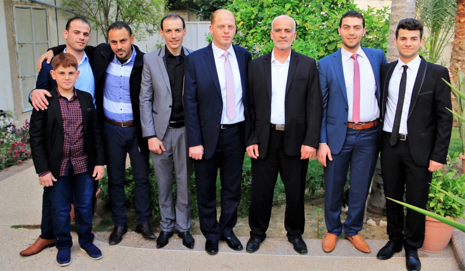 العريس يتوسط اشقاء العروس(وليد، منذر، محمد)، الطفلة هالة شادي العقاد وشقيقها ربيع