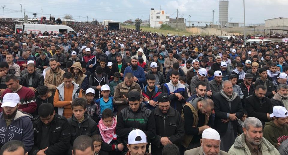 استشهد 16 فلسطينيا في قطاع غزة وأصيب أكثر من 1416 آخرين برصاص جيش الاحتلال الإسرائيلي اليوم، الجمعة، على وقع فعاليات "مسيرة العودة الكبرى"، حيث احتشد عشرات الآلاف من الفلسطينيين في قطاع غزة قرب الشريط الحدودي العازل، اليوم الجمعة، في حين أعلن الجيش الإسرائيلي كل المناطق المتاخمة للشريط الحدودي منطقة عسكرية من مغلقة.