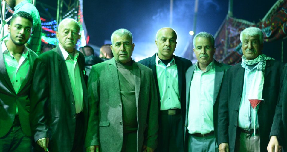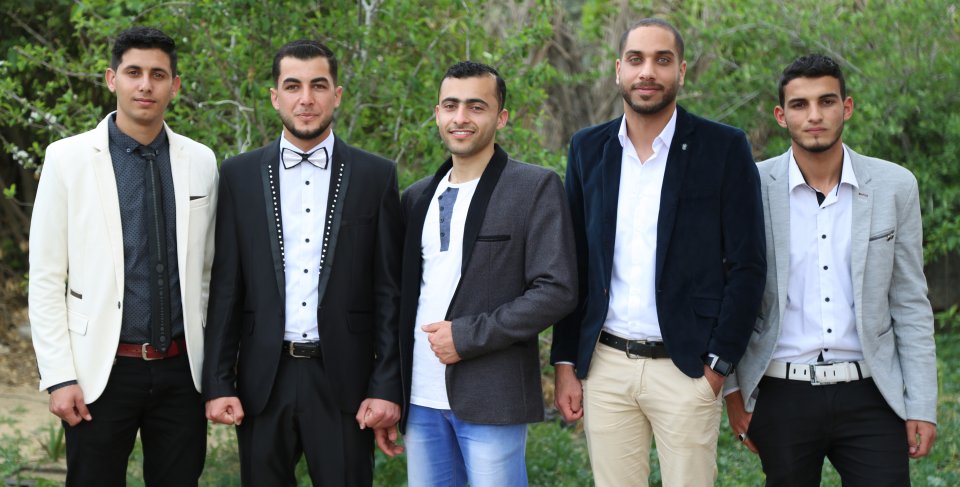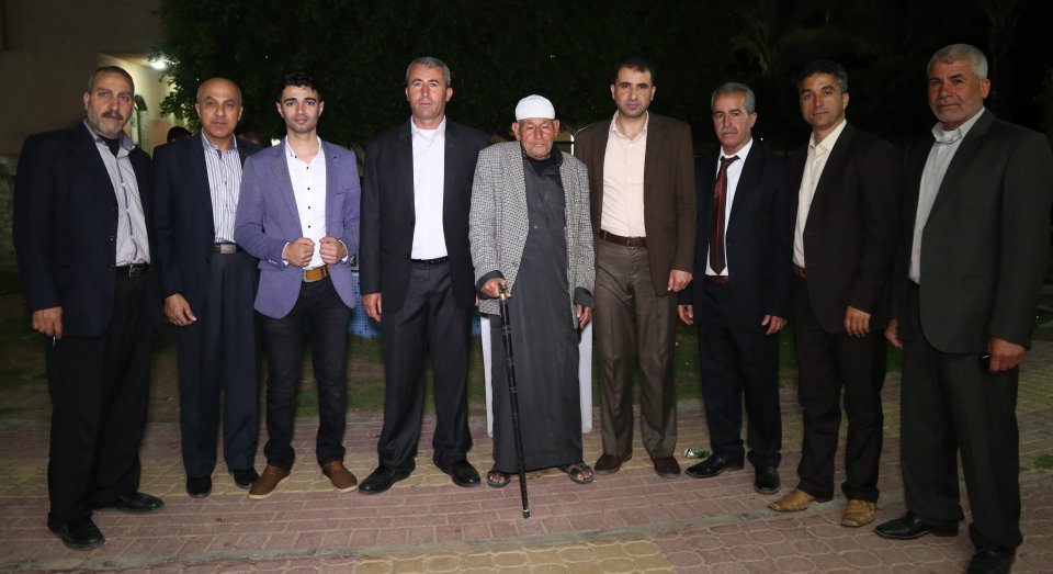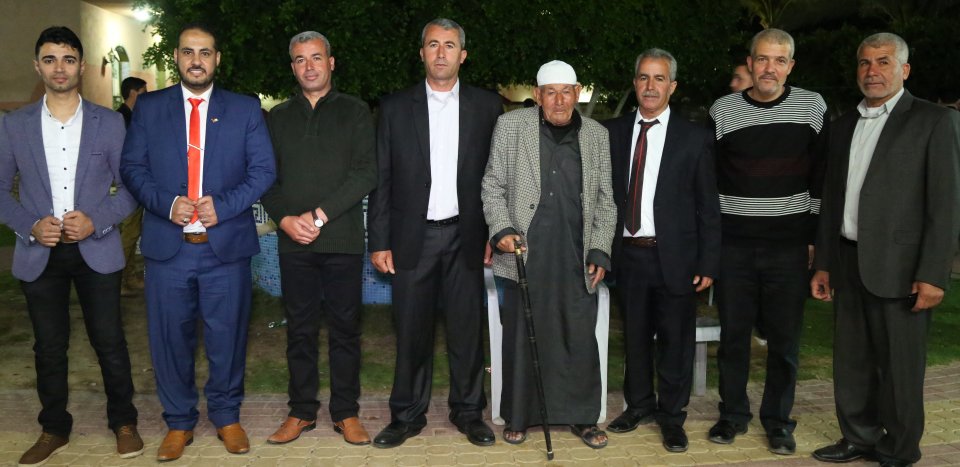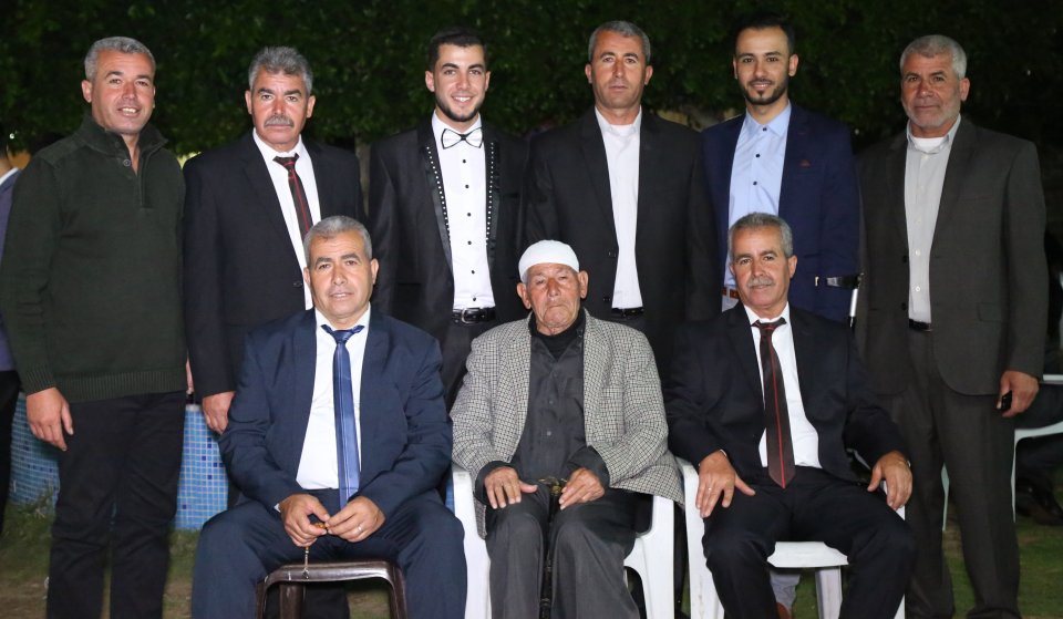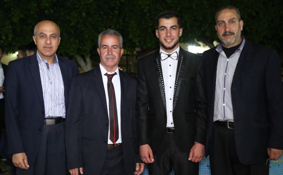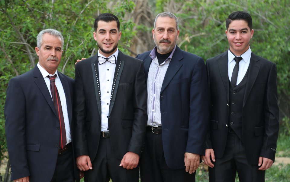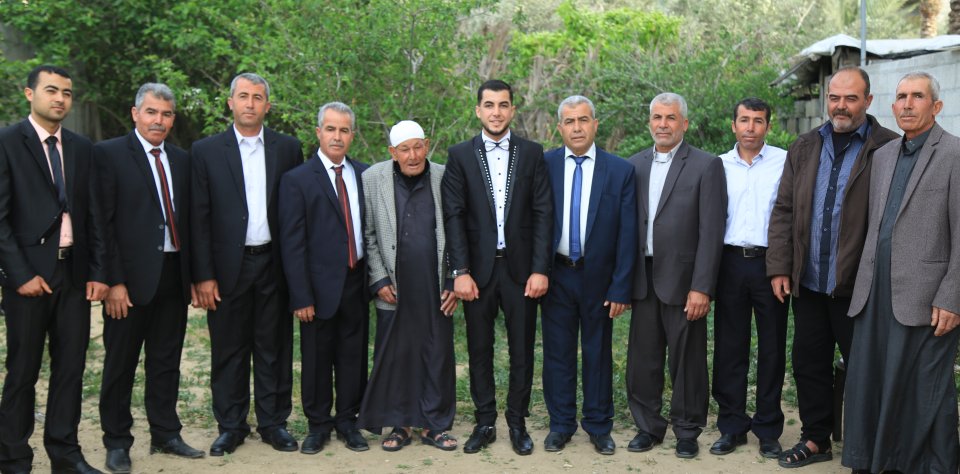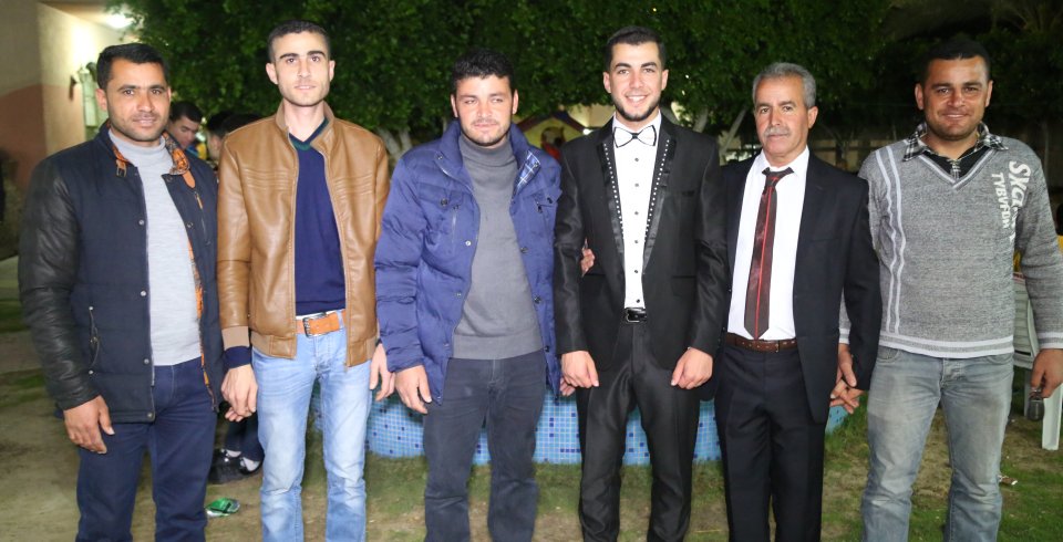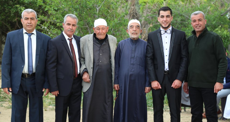 أ. عودة عبدالرحيم، أ. توفيق جبارة، الحاج جمال نايف، العريس، الحاج أحمد جابر، أ. أيمن وافي (زوج عمة العريس)، أ. ايمن سعيد، سعدون سليمان
