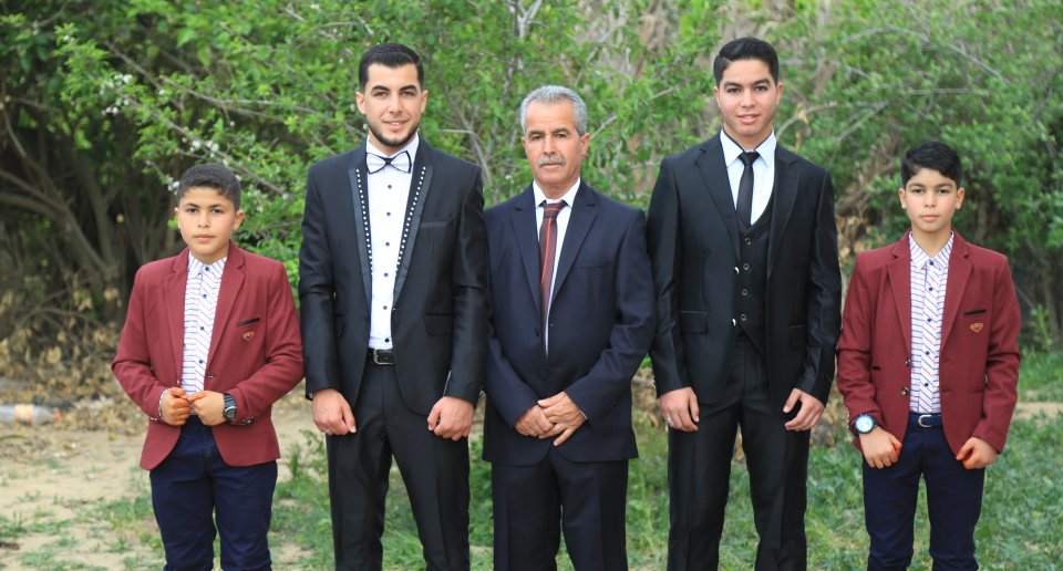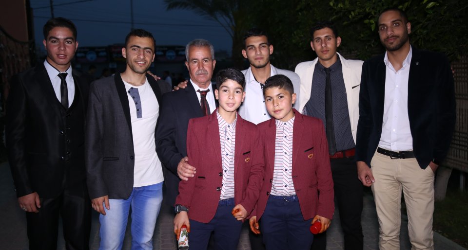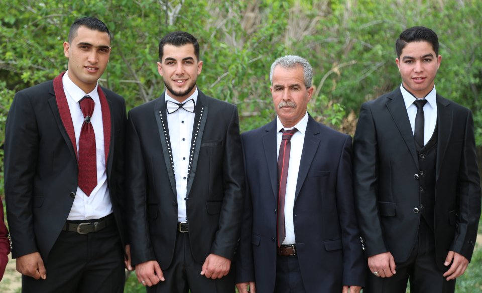 والد العريس يتوسط انجاه. محمود، وسام، رائد، فراس