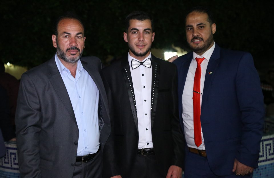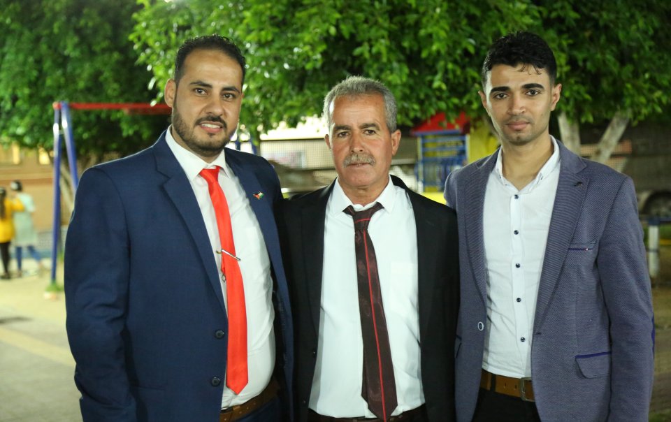أ. وليد محمد ( خال العريس)، والد العريس، العريس، الحاج فالوجي، أ. تميم فالوجي، أ. رائد جبارة(عم العريس)