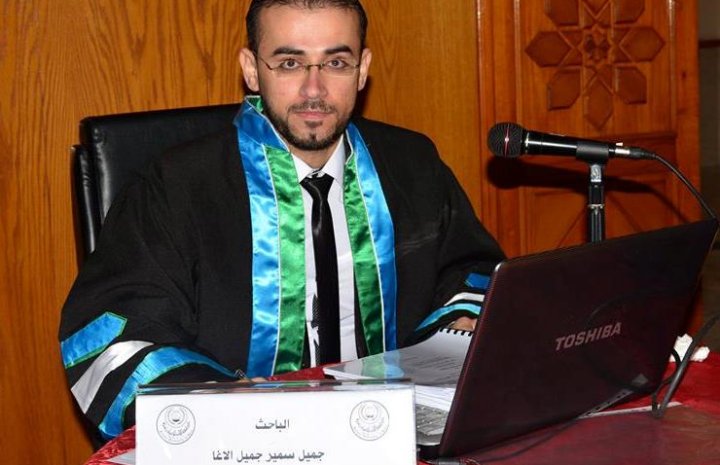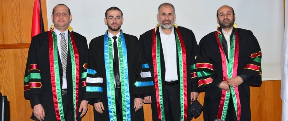د. عاطف الاغا، علاء سمير(شقيق الباحث)، ا.د سامي اب ناصر، ا. زهير الاغا، الباحث، د.وائل السراج