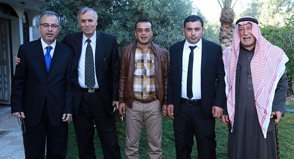 أ. عمار الشوربجي، أ. جعفر عباس، أ. عمر عودة، الحاج طاهر(والد العروس)، العريس، والد العريس، محمد جميل، عبدالعزيز، أ. محمد عيد، السيد عدنان خليل