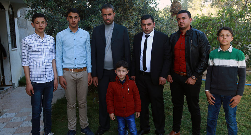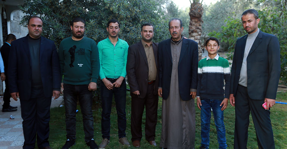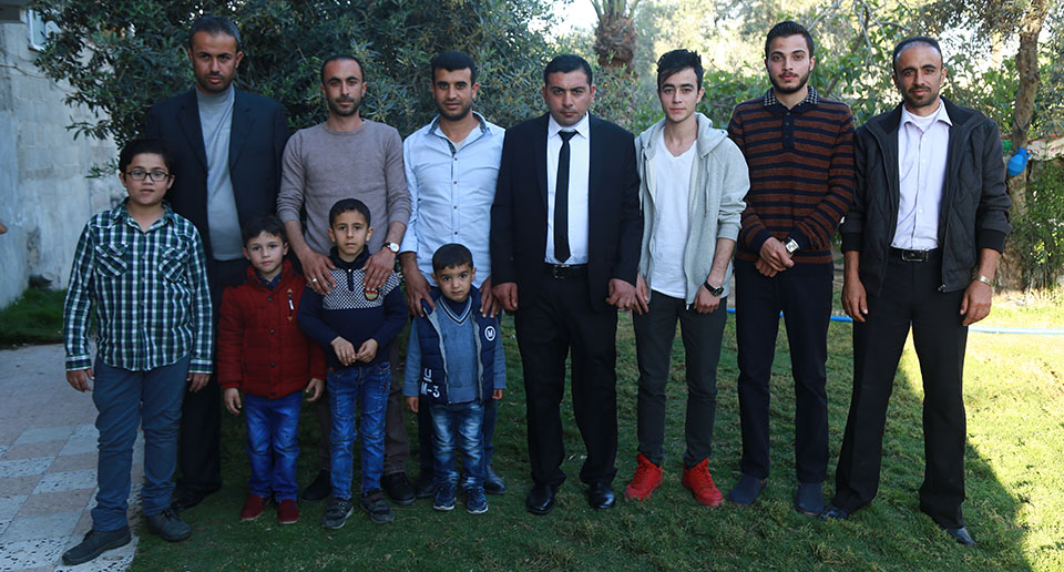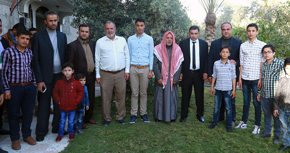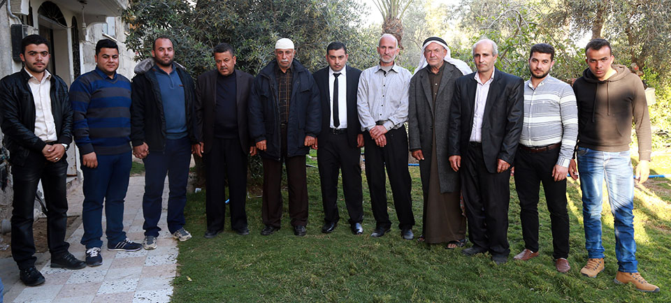 أ. محمد قاسم، أحمد طاهر، أ. عبدالكريم صقر(عم العريس)، أ. ناجي قاسم، العريس، د. وجيه صقر(عم العريس)، أحمد محمد صقر، الحاج أحمد نايف(زوج عمة العريس) وشقيقه أ. حمدان