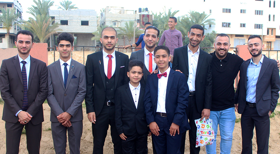 العريس يتوسط أشقاؤه وأصدقائه