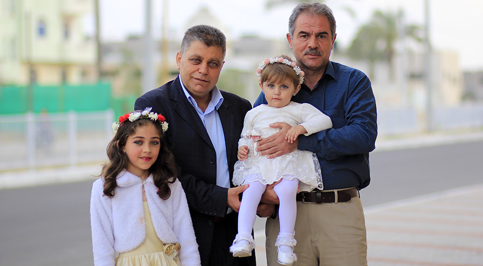أ. إياد نظام الأغا، أ. ناجي قاسم الأغا(عم العروس)، وكريمتيه ريم وسارة
