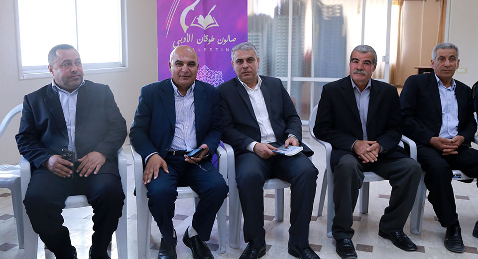 أ. بسام أبودياب،..، د. عبدالرحيم حمدان، أ. فايز السرساوي، أ. محمود روقة، جواد، أ. د. محمد البوجي، أ. نبيل العريني( مدير ومؤسس صالون طوقان)