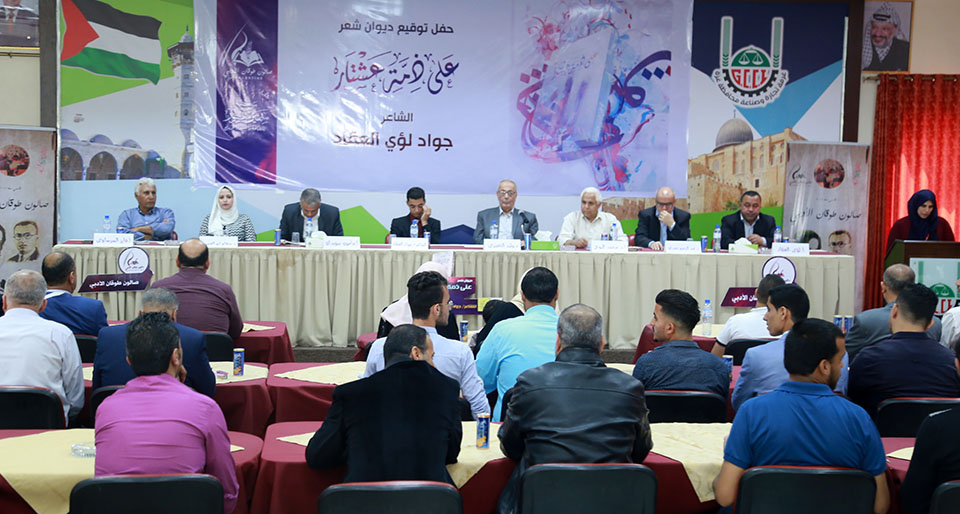 وذلك بحضور عدد من الأدباء والشعراء والنقاد والمهتمين. قدمت الحفل الإعلامية سارة سلامة وتخلل الحفل كلمات احتفائية مستضيف الحفل الدكتور وليد الحصري رئيس مجلس إدارة الغرفة التجارية محافظة غزة.