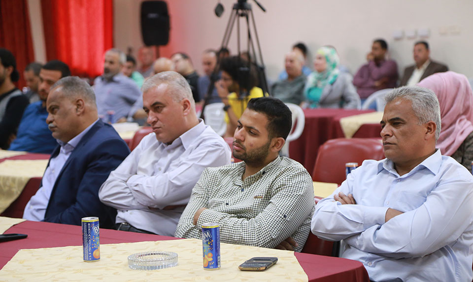 أ. سارة سلامة، أ. لؤي العقاد، د. عبدالرحيم حمدان، أ. د. محمد البوجي( رئيس جمعية النقاد الفلسطينيين وأستاذ الأدب والنقد والفكر)، د. وليد الحصري، الشاعر أ. جواد لؤي العقاد، أ. مأمون سويدان، د. سهام أبو العمرين(مكتبة سمير منصور)، أ. فايز السرساوي(وزارة الثقافة)