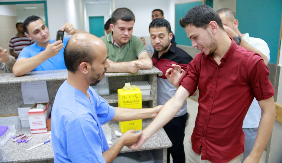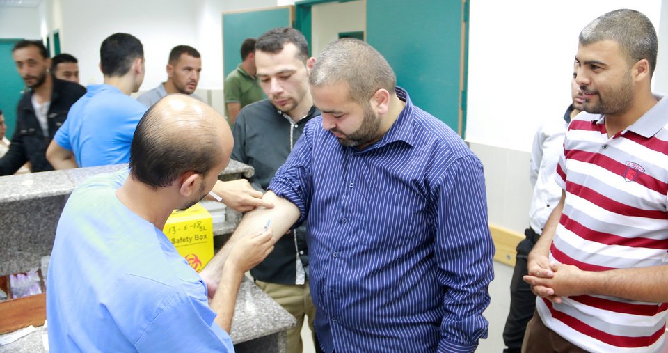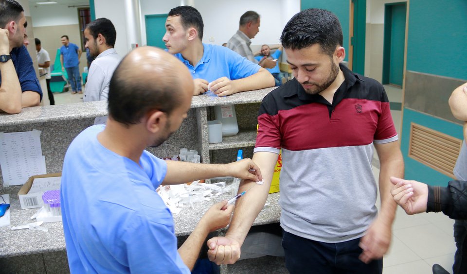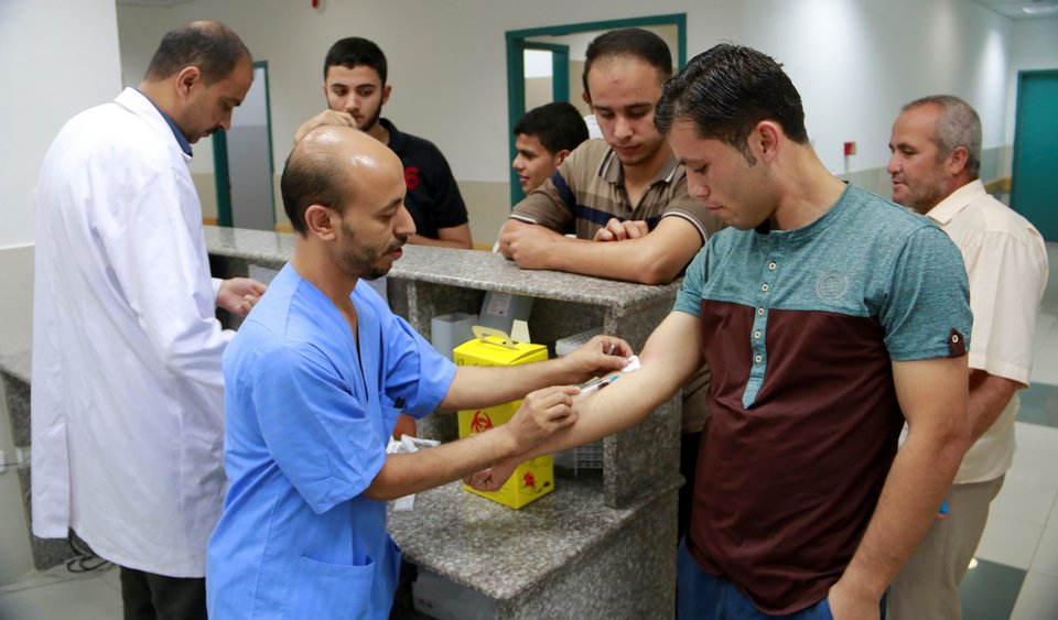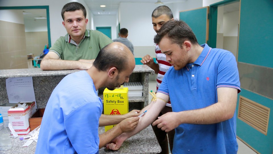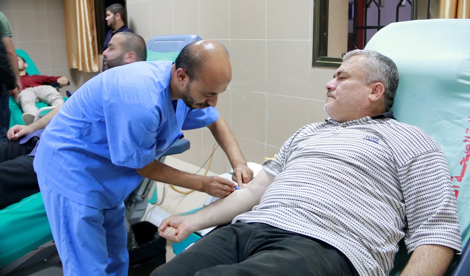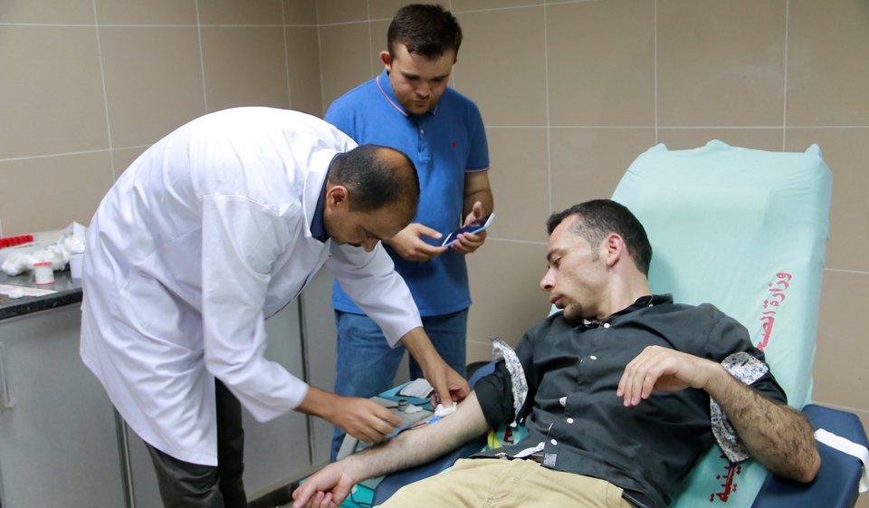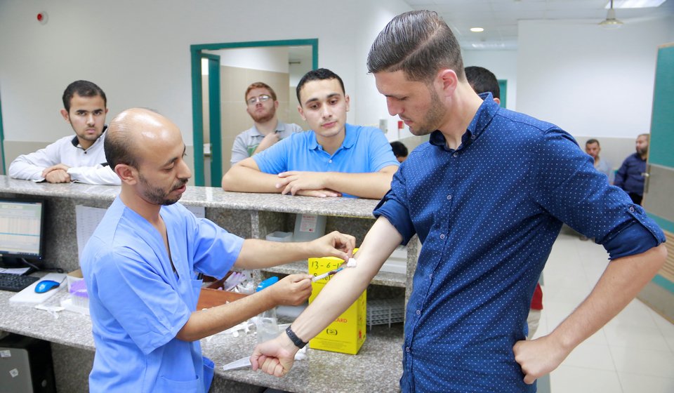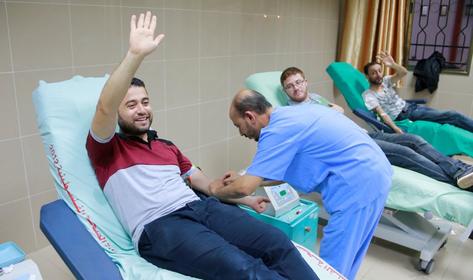 قال رسول الله صلى الله عليه وسلم : كل سلامي من الناس عليه صدقة كل يوم تطلع فيه الشمس: تعدل بين اثنين صدقة، وتعين الرجل في دابته، فتحمله عليها، أو ترفع له عليها متاعه صدقة، والكلمة الطيبة صدقة، وبكل خطوة تمشيها إلى الصلاة صدقة، وتميط الأذى عن الطريق صدقة. رواه البخاري ومسلم. و نظراً للحاجة الماسة للمرضى والحالات الخاصة، منها غسيل الكلى والثلاسيميا، بادرت عائلة الأغا بحملة للتبرع بالدم لتغطية حاجات المستشفيات من وحدات الدم، مساهمة منها في إيجاد حل مناسب لتغطية هذه الاحتياجات، وعلى الأخص في الظروف الطارئة، وحيث أن عائلة الأغا هي جزء من المجتمع الفلسطيني في غزة، وخصوصاً في خان يونس، تقدمت بمبادرتها. اليكم صور من داخل مختبر بنك الدم - مستشفى ناصرالأربعاء الموافق 13-06-2018