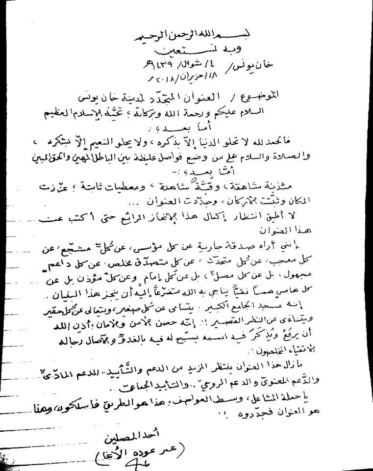 الرئيسة/متفرقات/العنوان المتجدد لمدينة خان يونس متفرقات العنوان المتجدد لمدينة خان يونس تاريخ النشر : الأربعاء | 20-06-2018 | 00:31 3290 اضغط هنا للتعرف على المرحوم أ. عمر عودة إسعيد محمد سالم إبراهيم(بدوي) الأغا يمكنك تلقي أحدث الأخبار أول بأول بانضمامك لإحدى مجموعات الواتساب الخاصة بالعائلة من خلال الضغط هنـا اظهر المزيد
