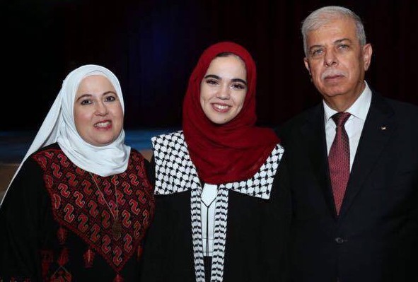 الدوحة- المتفوقة رند يحيى زكريا الأغا مع والديها