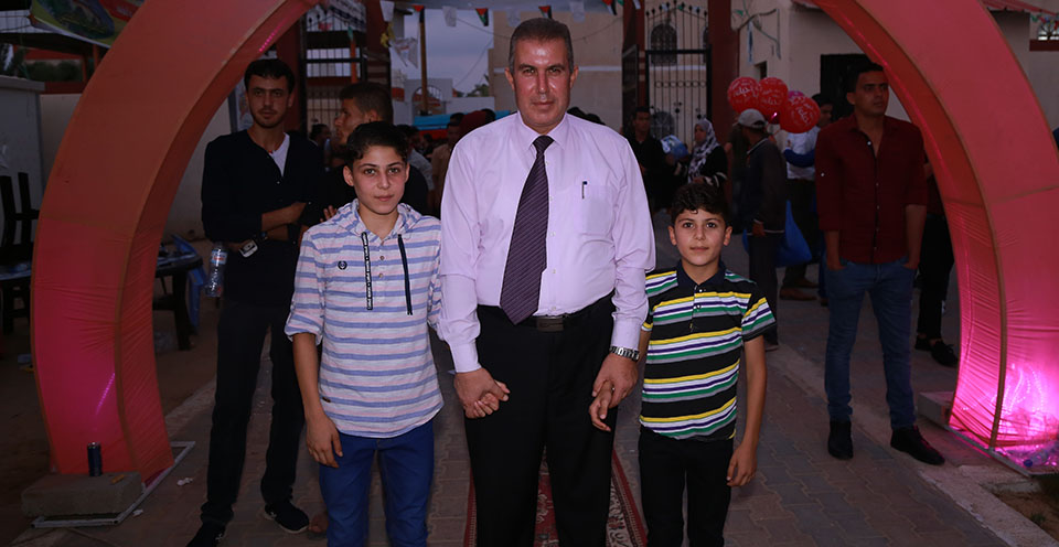 الطالب رشيد النخالة وشقيقه أحمد ووالدتهما