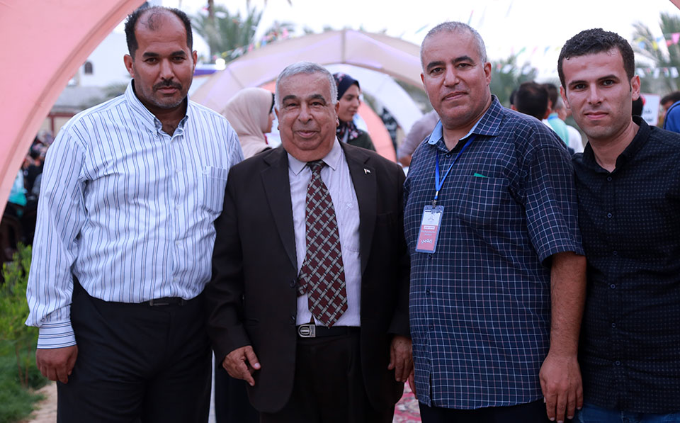 أ. ياسر محمد الأغا(اللجنة الإعلامية للاحتفال- جامعة غزة)، المحافظ د. أحمد الشيبي، رجل الأعمال أشرف الأسطل
