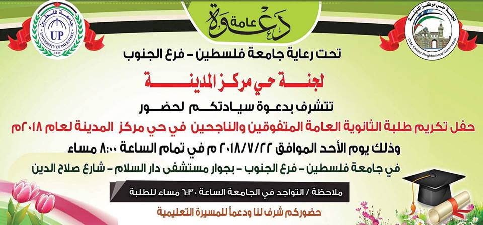الرئيسة/متفرقات/تحت رعاية جامعة فلسطين لجنة حي مركز المدينة تدعوكم لحفل تكريم التوجيهي متفرقات تحت رعاية جامعة فلسطين لجنة حي مركز المدينة تدعوكم لحفل تكريم التوجيهي تاريخ النشر : الجمعة | 20-07-2018 | 16:32 4735 اضغط هنا للتواصل أو التعرف على الأستاذ محمود يوسف حمدان يوسف حمدان الأغا يمكنك تلقي أحدث الأخبار أول بأول بانضمامك لإحدى مجموعات الواتساب الخاصة بالعائلة من خلال الضغط هنـا اظهر المزيد