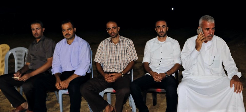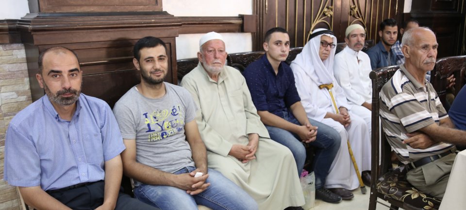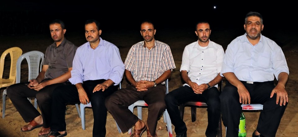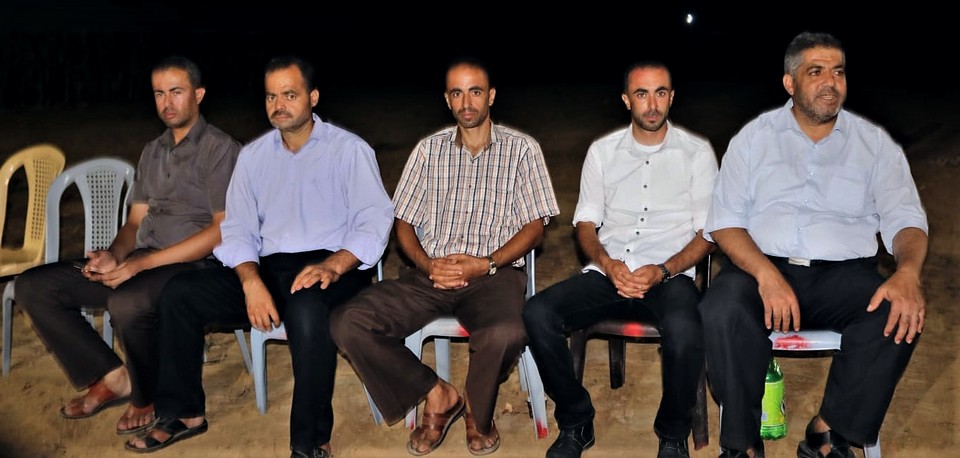 أ. محمد رشاد(زوج شقيقة العريس)، الحاج أبو غسان، والد العريس، العريس، والد العروس، أ. محمد جميل، أ. محمد عدنان (شقيق العريس)