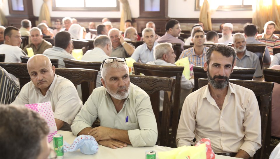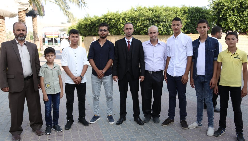 أ. حيدر سليمان ، أ. محمد عيد،أ. سليم طاهر، العريس، أ. بلال سعيد، أ. جعفر عباس، الحاج طاهر سليم، والد العريس، أ أحمد طاهر، أ. محمد جميل
