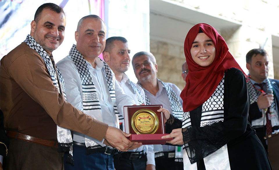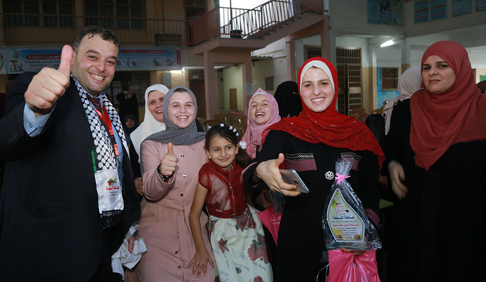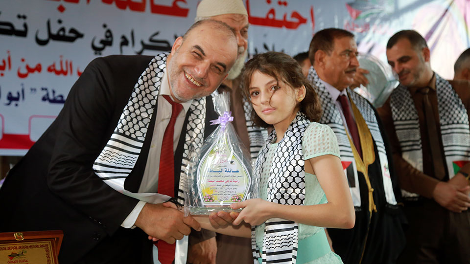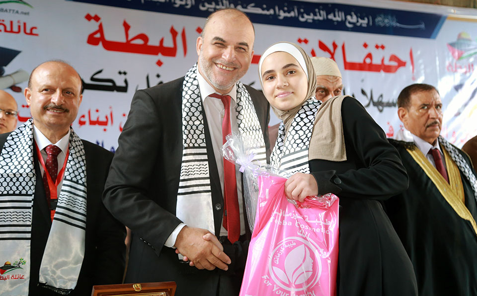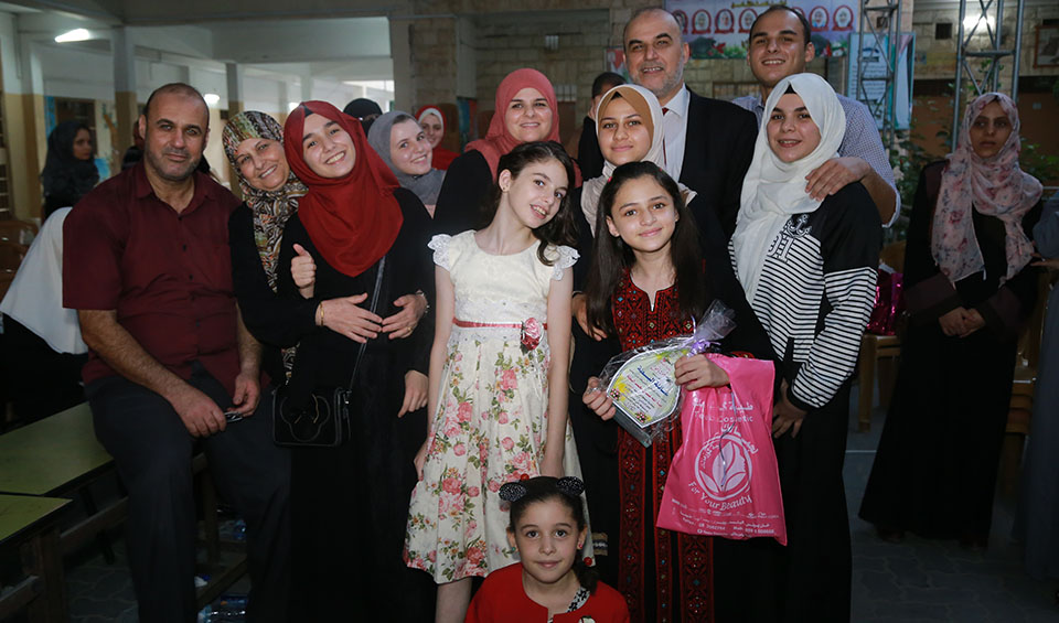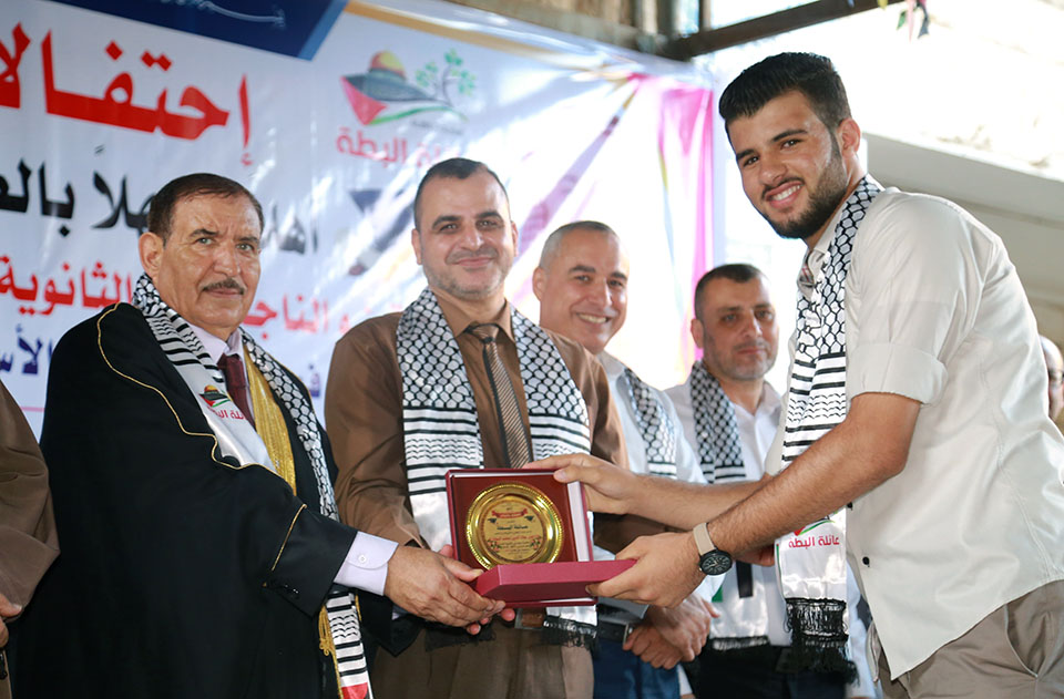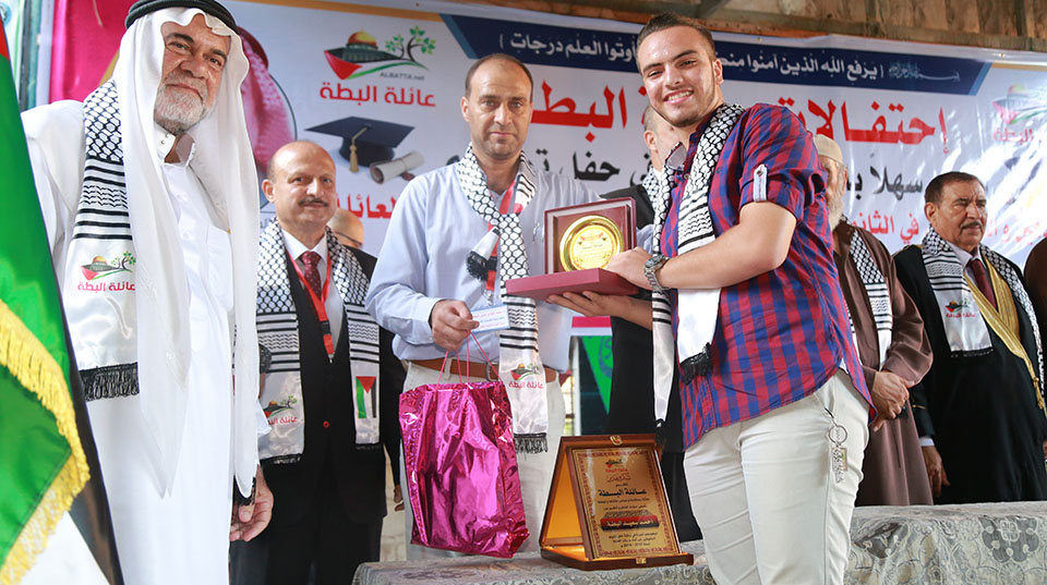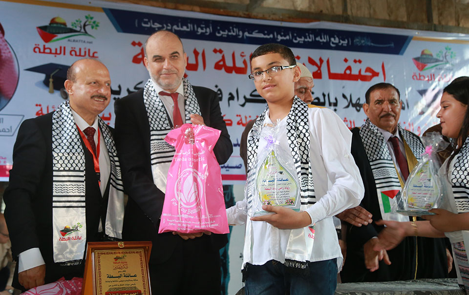 خان يونس مدرسة حيفا إحتفال عائلة البطة بتتويج أوائل الطلبة و الطالبات المتميزون من الصف الخامس الإبتدائي و المرحلتين الإعدادي و الثانوي الحاصلين على معدل نسبته من 95% فما فوق و حفظة كتاب الله تعالى.